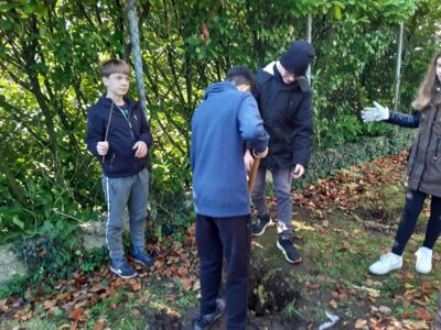Einen halben Vormittag gruben, pflanzten und bewässerten die Siebtklässler/-innen. Nachdem sie das Pflanzgelände zudem mit Absperrband gegen unbefugten Zutritt gesichert hatten, betrachten die Mädchen und Jungen stolz ihr Werk. Mehrere von ihnen stellten fest: „Das ist erst der Anfang. Nächstes Jahr machen wir weiter.“ Auch aus anderen Klassen erfolgte Zuspruch und der Wunsch, im nächsten Jahr Teil des Projekts zu werden.
